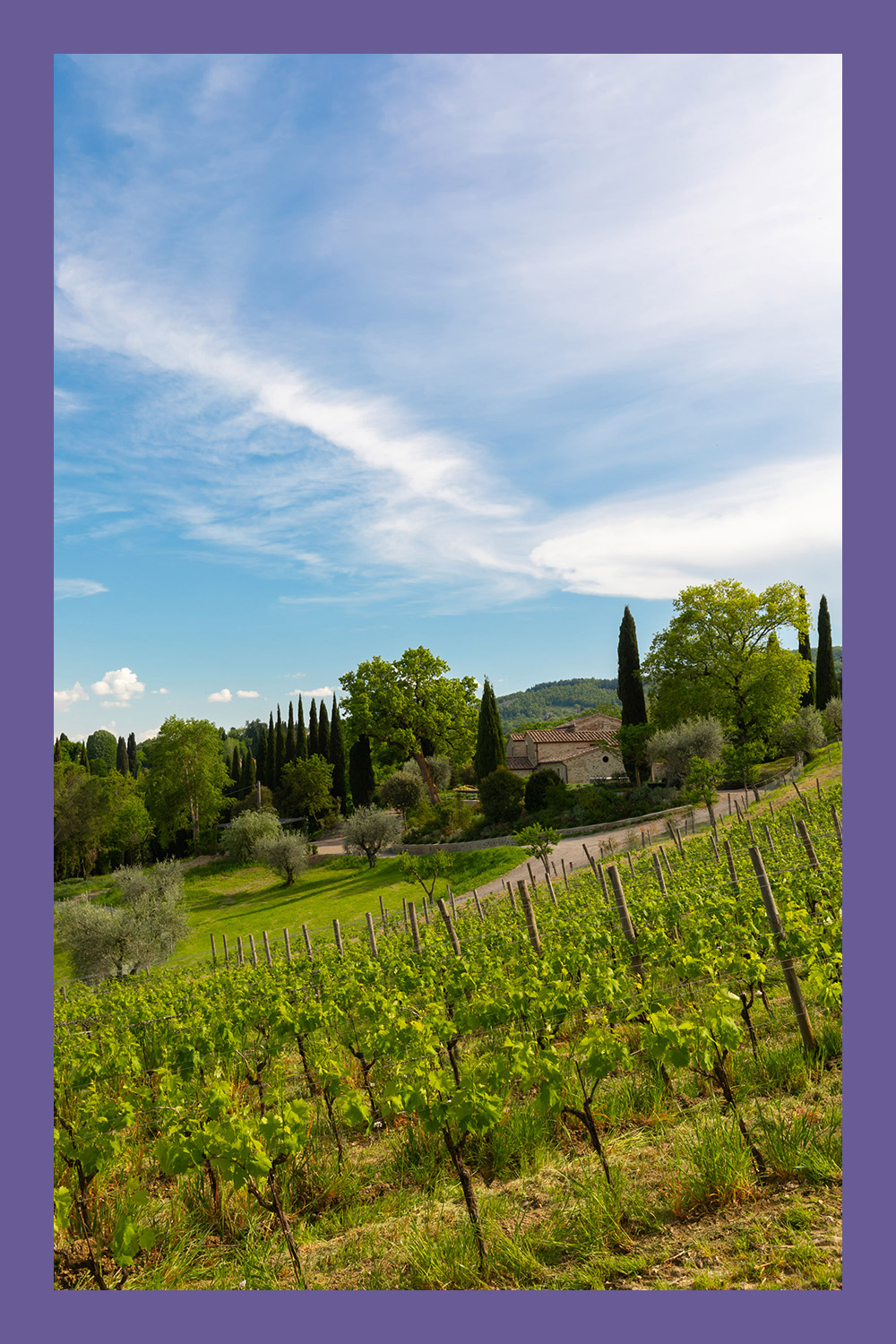 L’azienda si estende su 26 ettari di vigneti, con 5.400 piante per ettaro, a un’altitudine superiore ai 300 metri sul livello del mare. Le principali varietà coltivate sono Sangiovese, Cabernet Franc, Cabernet Sauvignon, Merlot, Malbec e Petit Verdot.